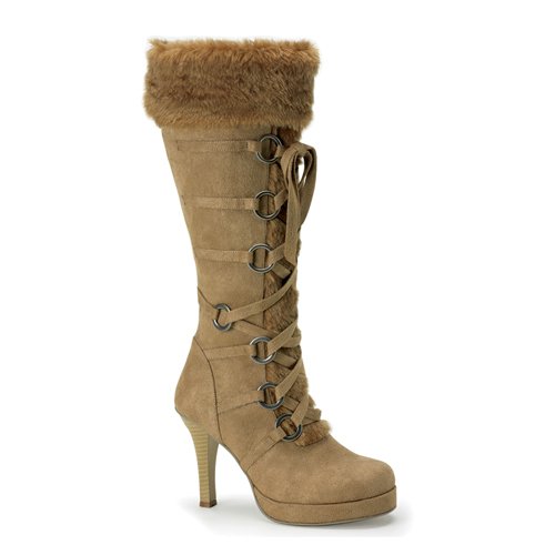 Womens High Heel Boots 3 3/4 Inch Sexy Tan Knee High Fur Trim Viking Theatre Costumes Boot
